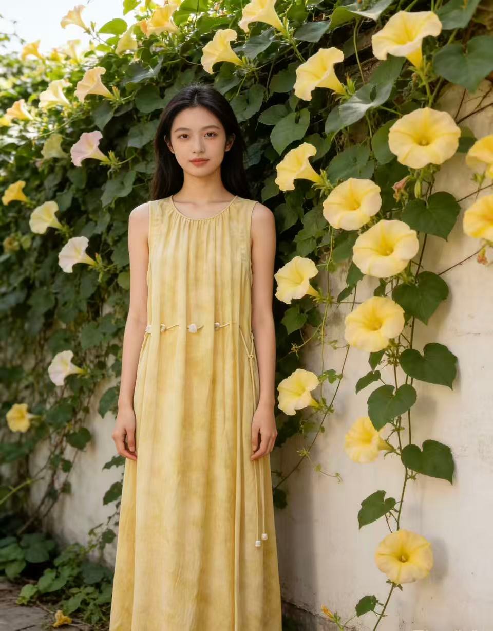 | Design Format | Sleeveless, halter neck, tiered ruffle hem, loose A-line maxi |
