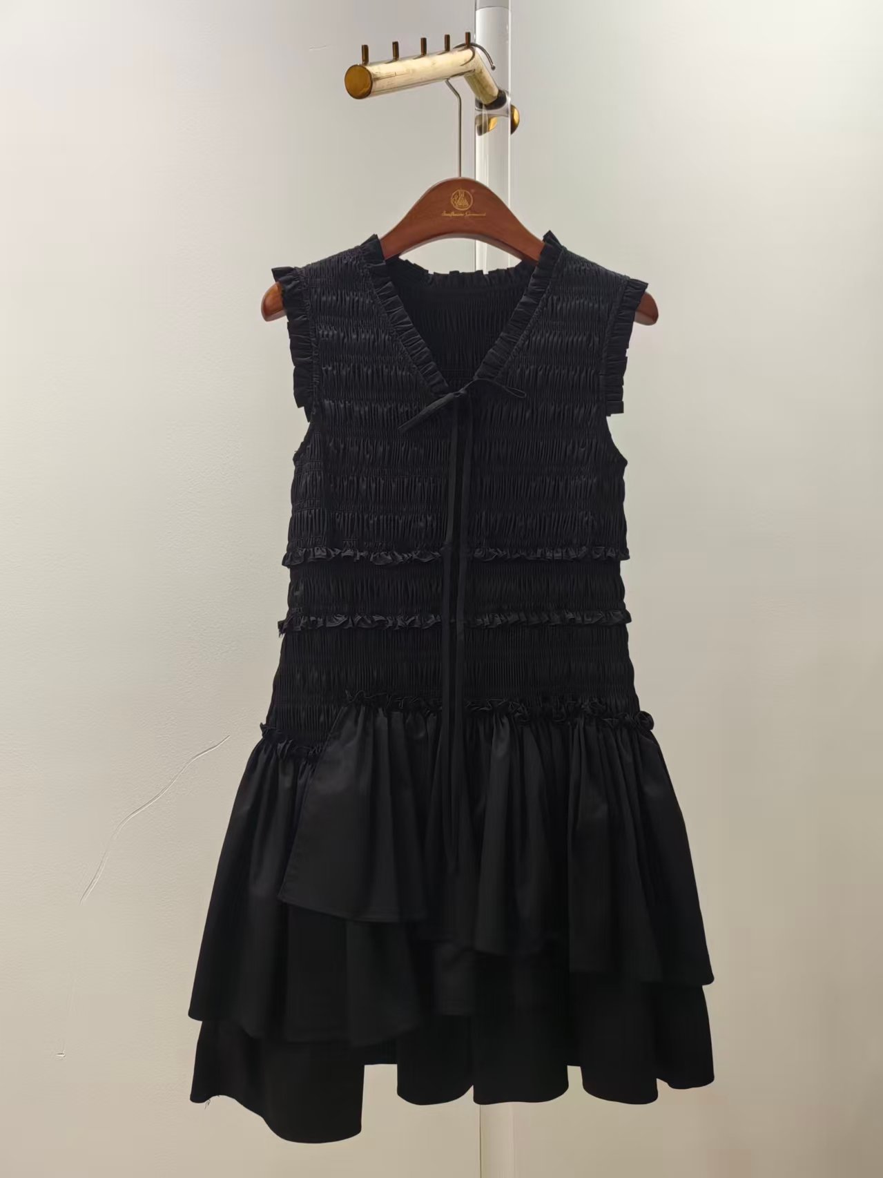 | Technics | Precision horizontal smocking (shirring), ruffle trim stitching, tiered hem construction, self-tie ribbon sewing |