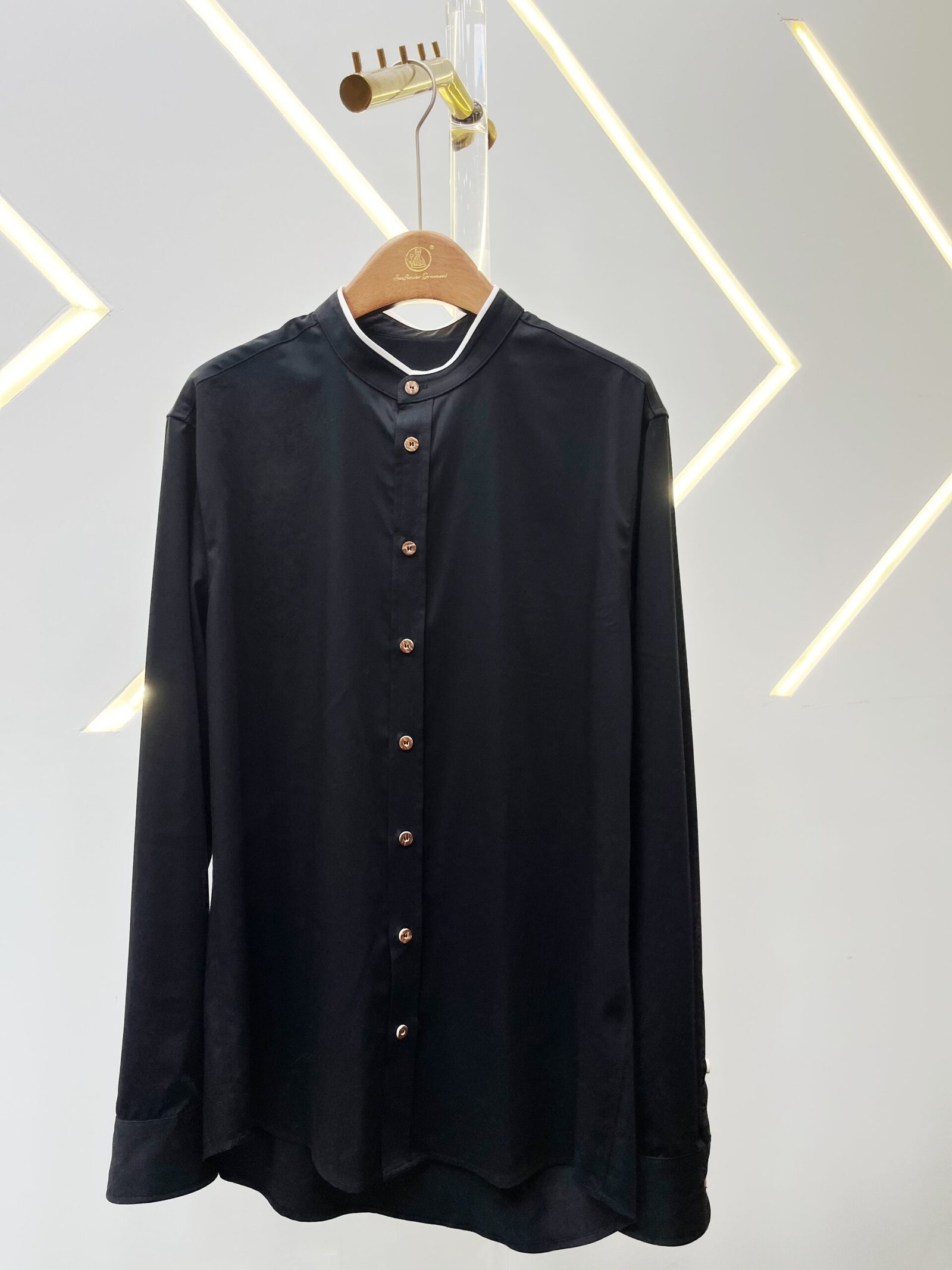| Product Name | Black Stand-Collar Men’s Shirt with White Trim |