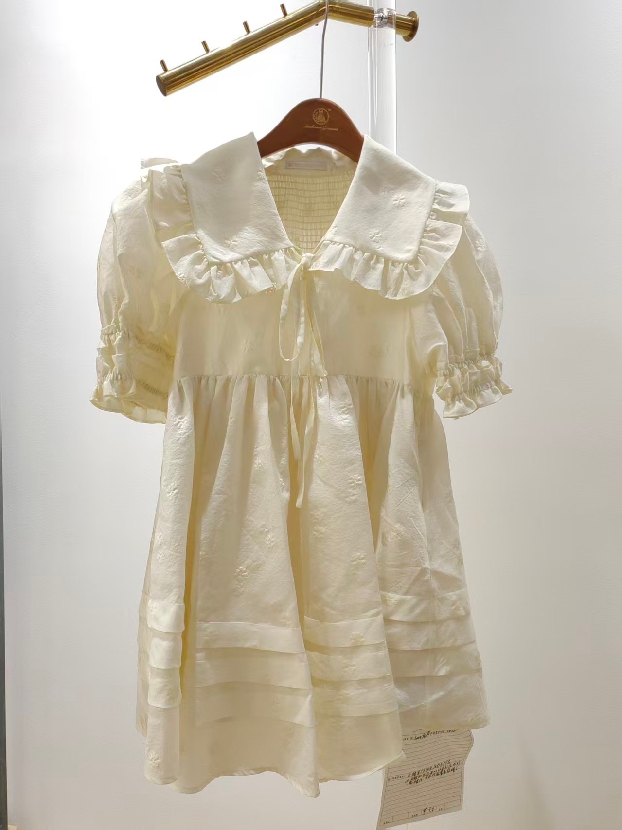 Product Name Cream Embroidered Peter Pan Collar Puff Sleeve Tiered Mini Dress