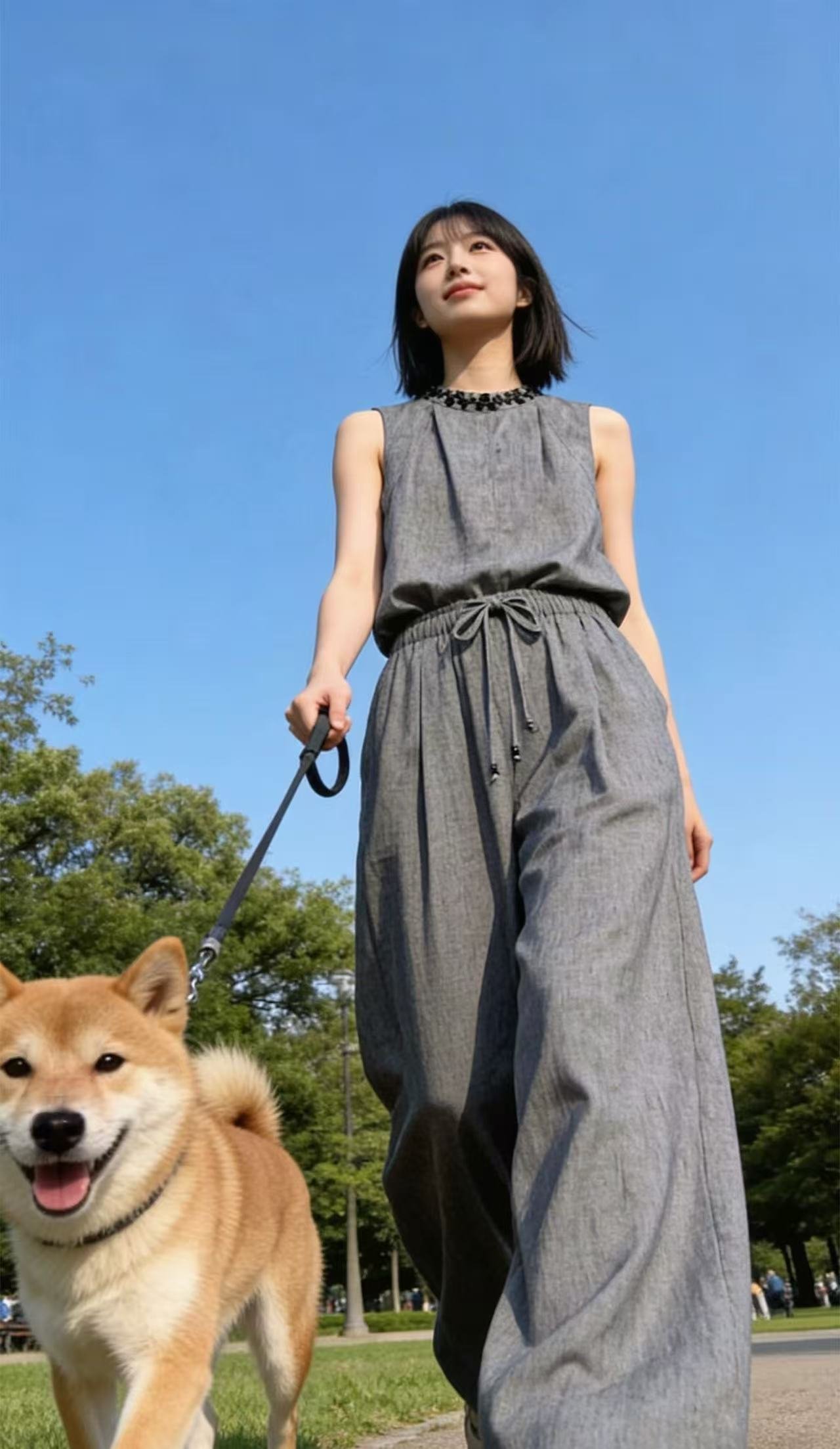 | Product Name | Grey Linen-Blend Sleeveless Top & Wide Leg Pants Two-Piece Set |