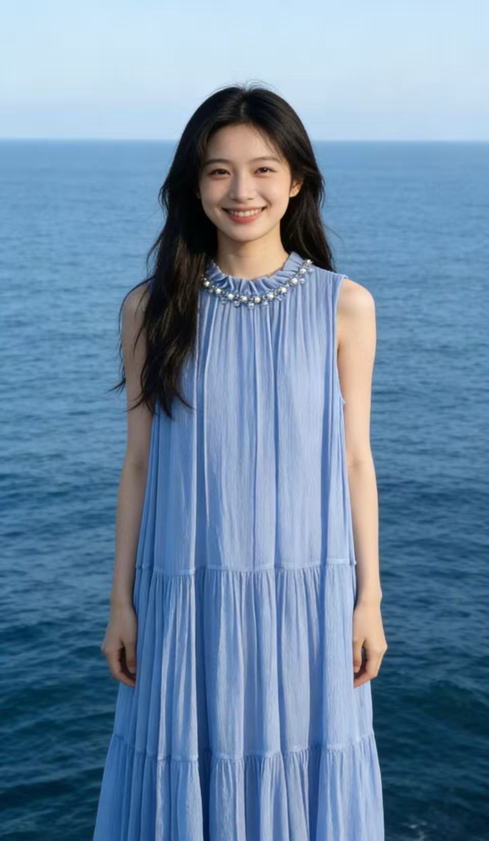 | Product Name | Light Blue Sleeveless Tiered Maxi Dress |